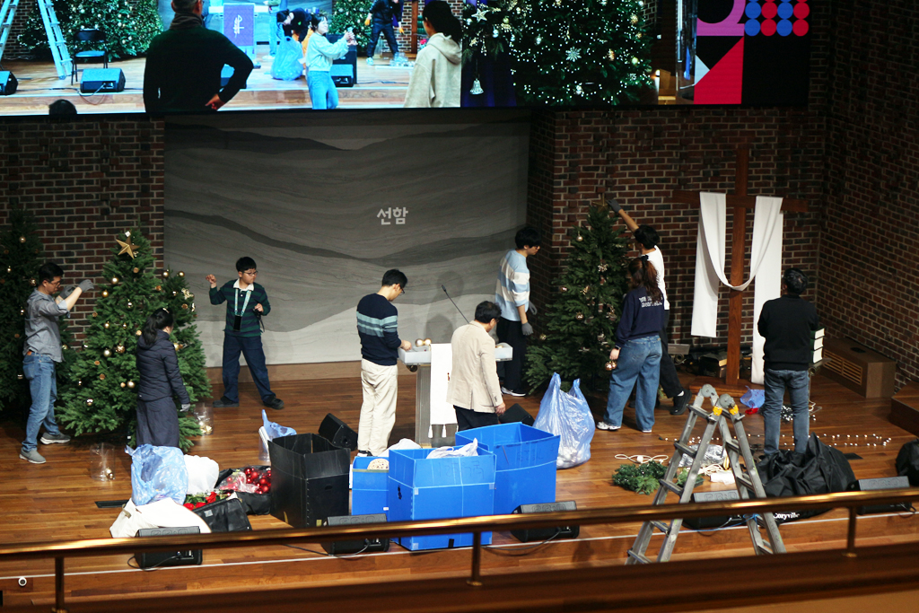 대강절을 한주 앞둔 11월 23일 주일 오후, 성단장식팀, 청장년선교회, 청년부, 관리부를 비롯해 아이들까지 다양한 부서의 사람들이 모여 성탄장식을 진행했습니다.