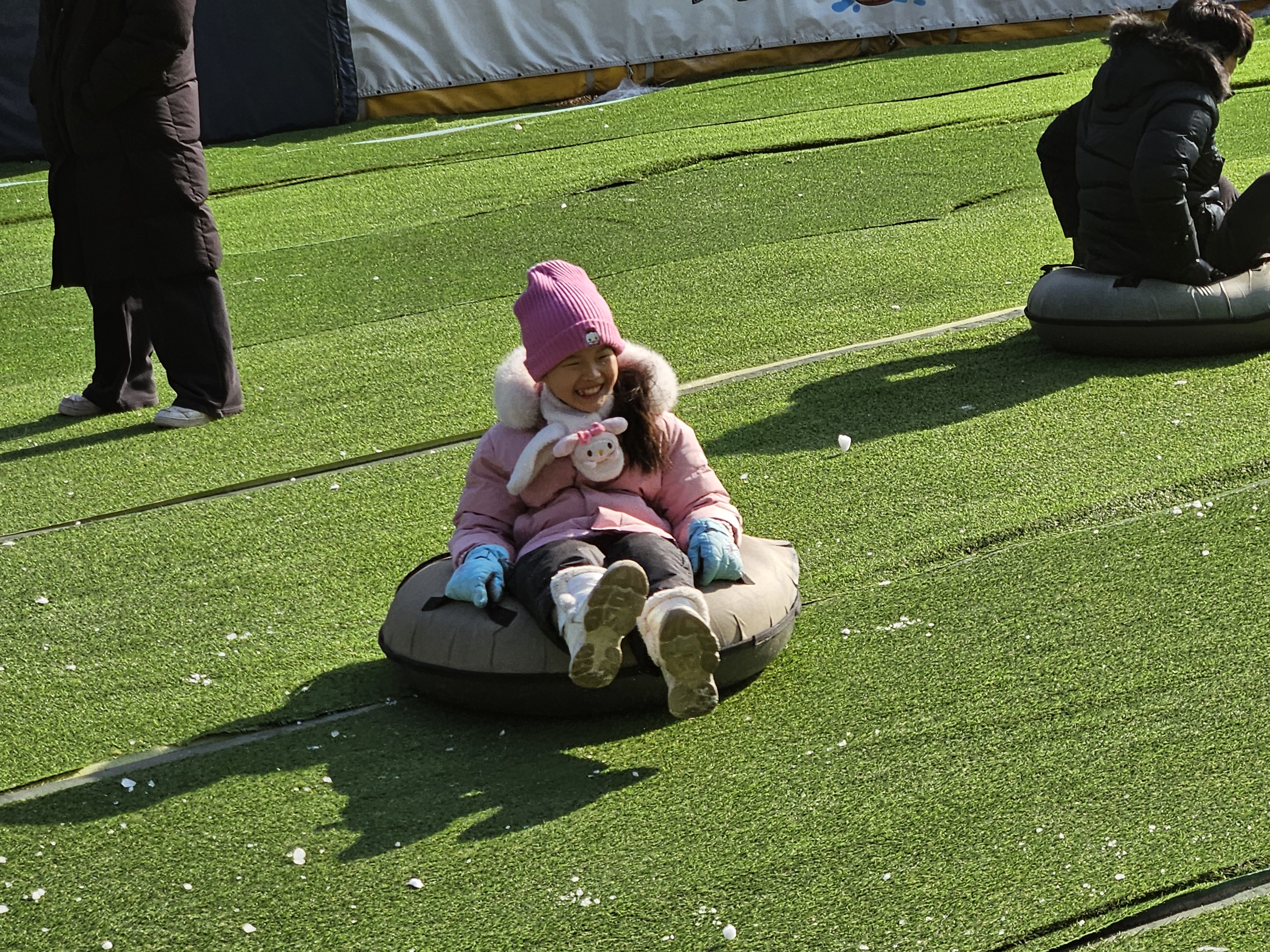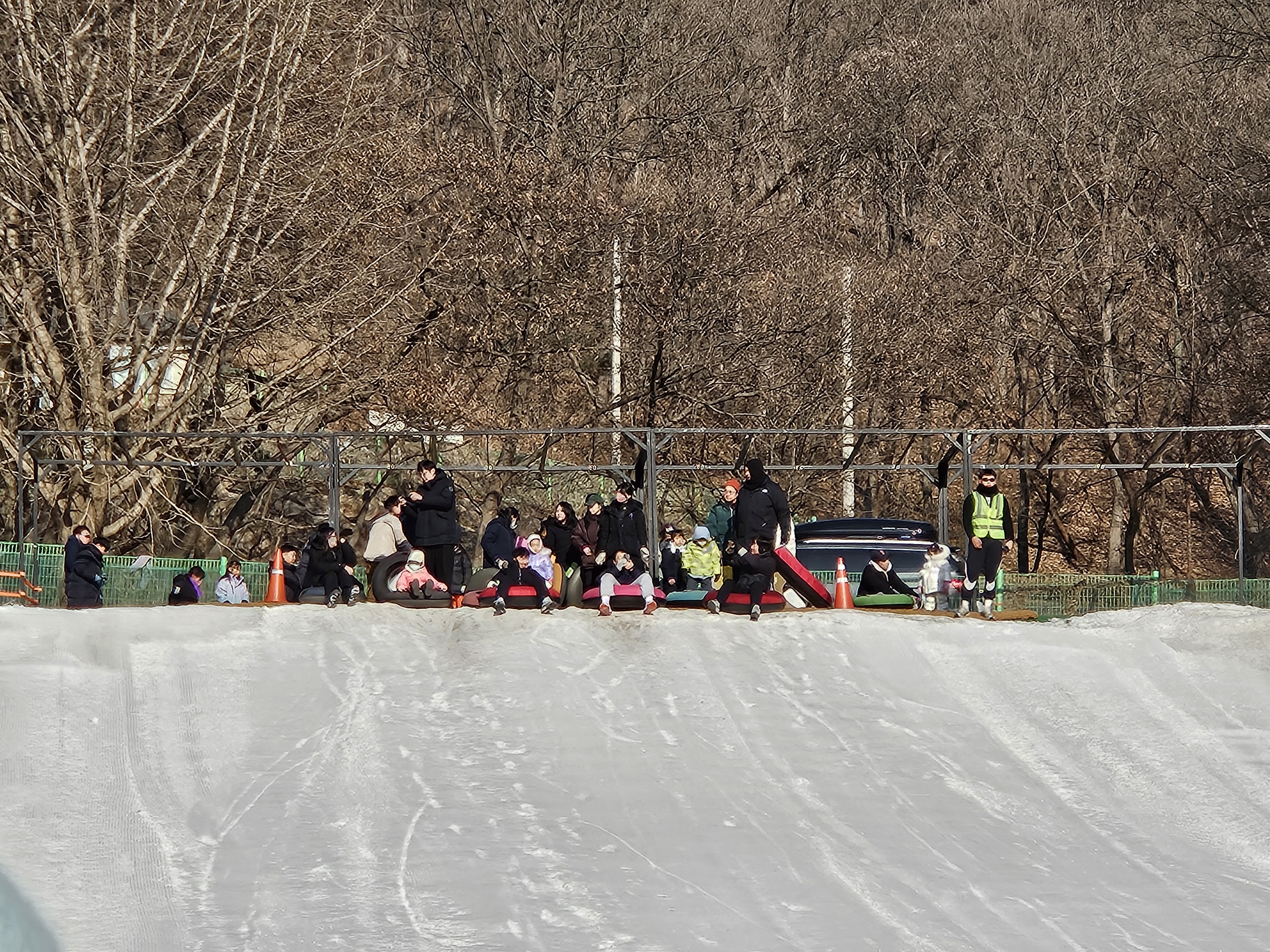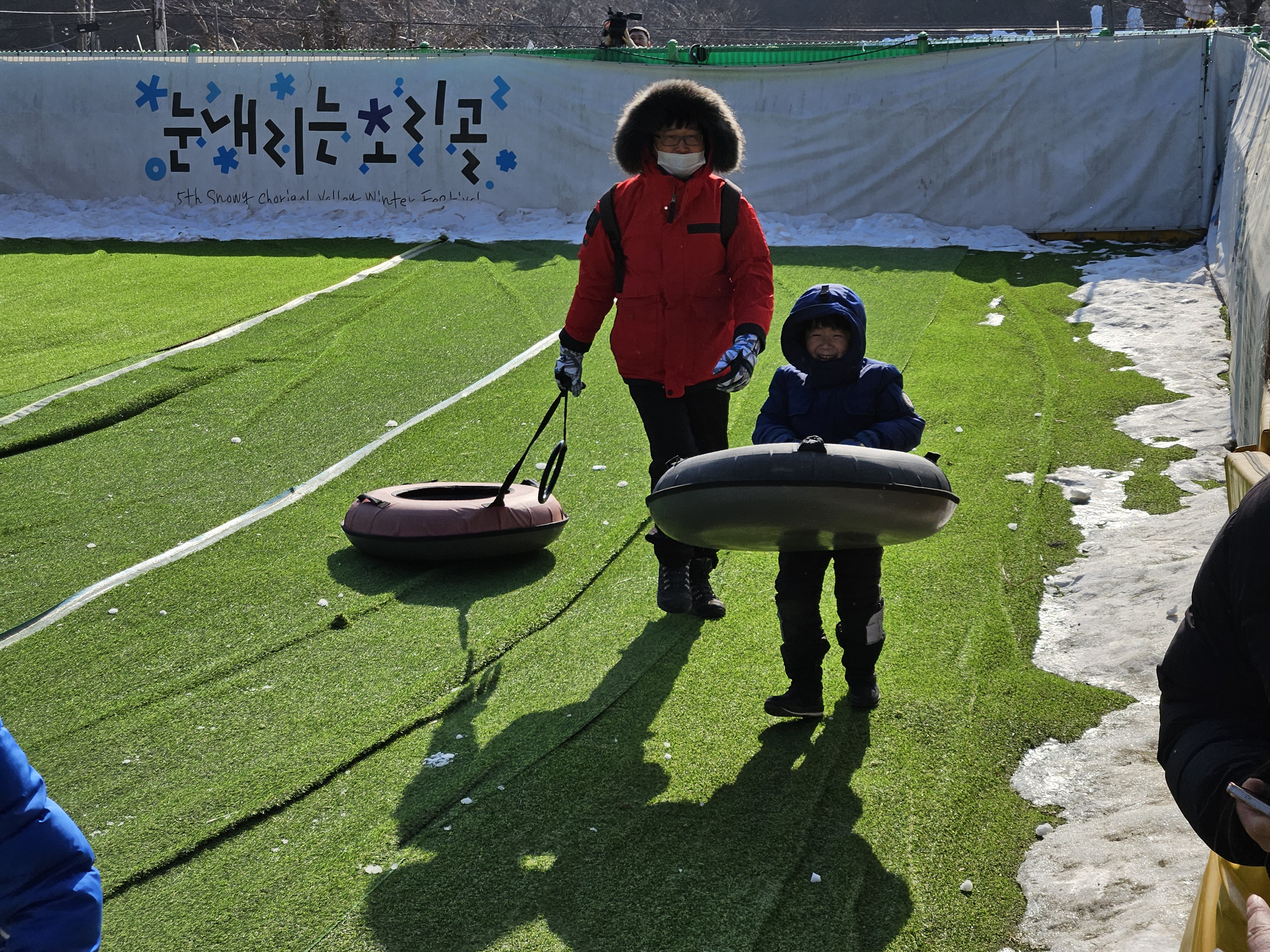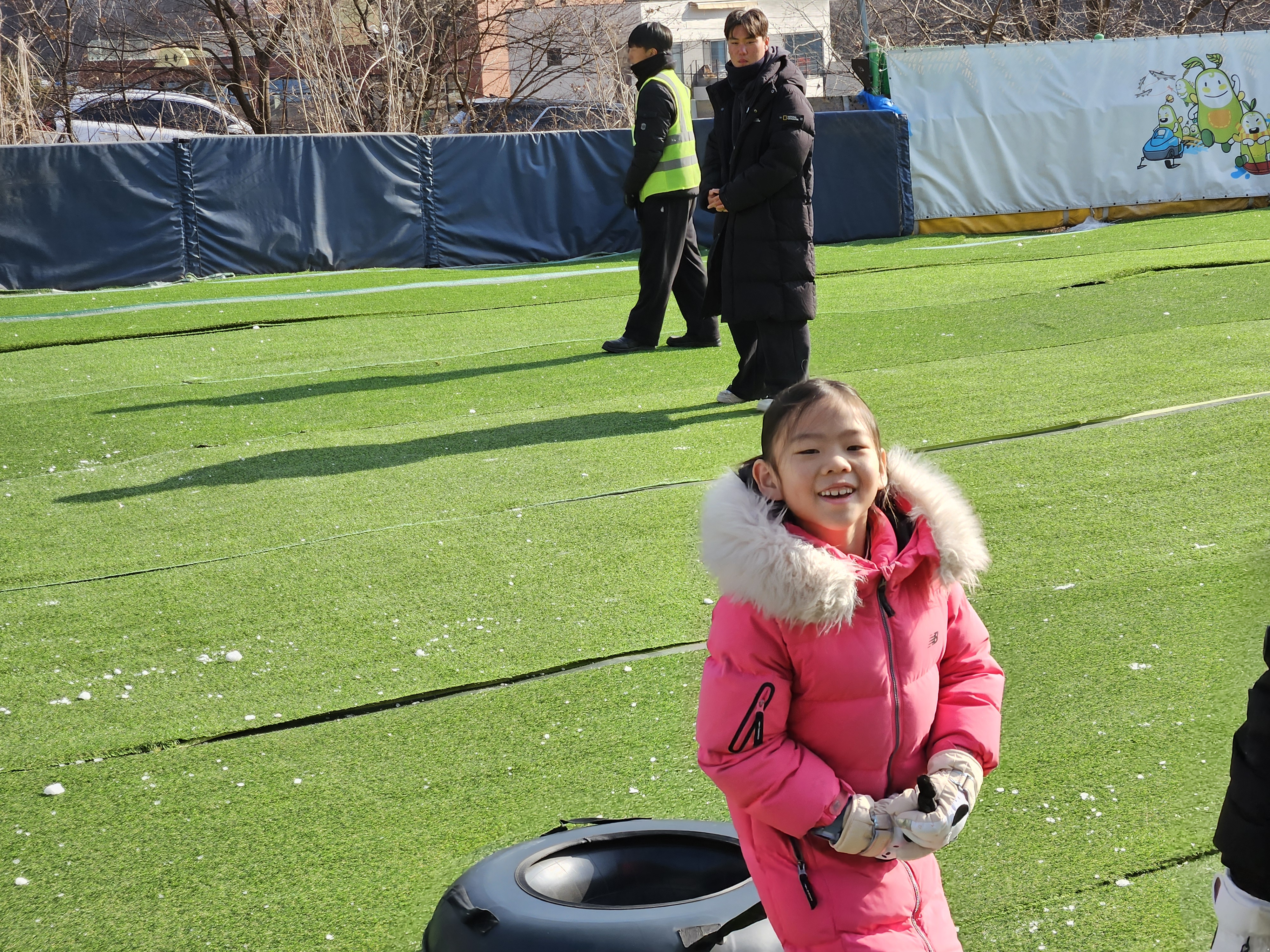 가족들과 함께 오랜만에 야외 나들이를 갑니다. 모두 옷을 따뜻하게 챙겨입고 눈썰매장으로 갑니다.