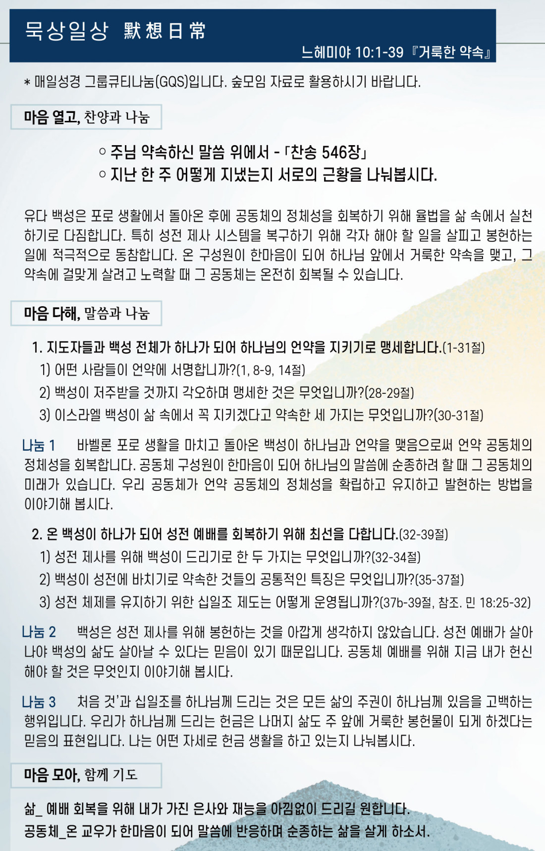 · 일시 및 장소 : 12월 7일(주일), 14일(주일) 오후 1시 / 3층 세미나실