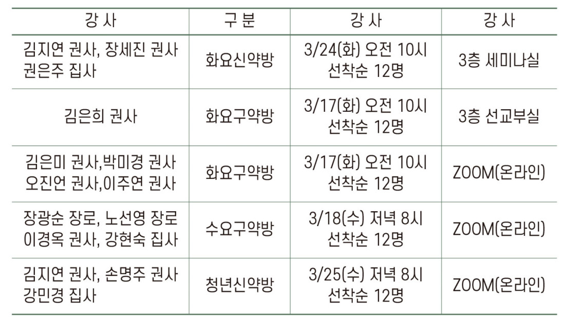 6. 가정예배 및 개인 영성생활을 위한 Q.T책(매일성경 3/4월호)을 판매합니다.