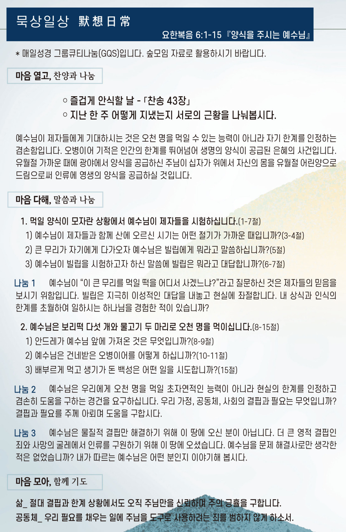· 강사 : 이평강 목사(큰숲목회연구소장)