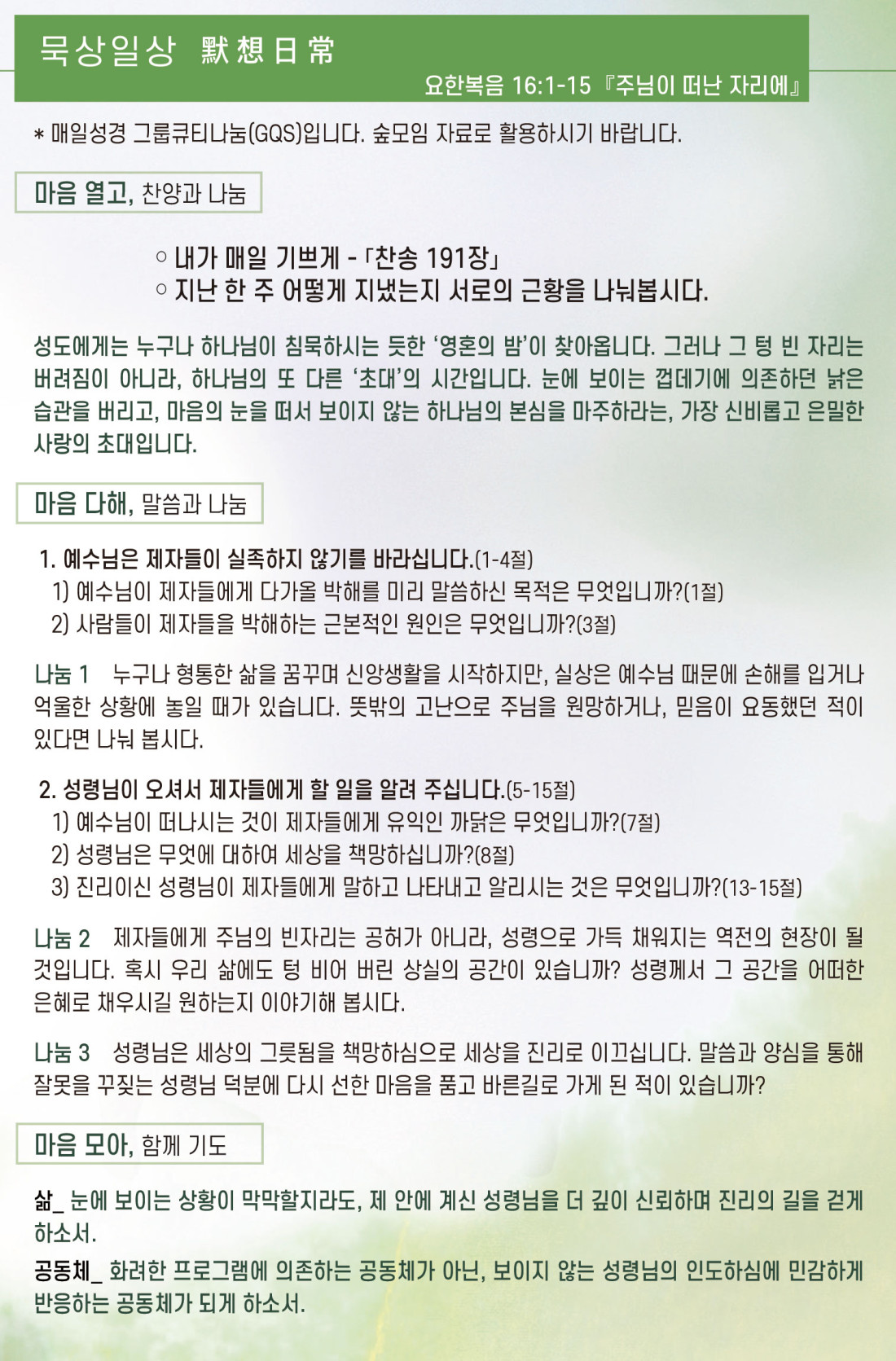예수님의 십자가 고난을 생각하며 금식과 회개로 경건하게 보내시기 바랍니다.