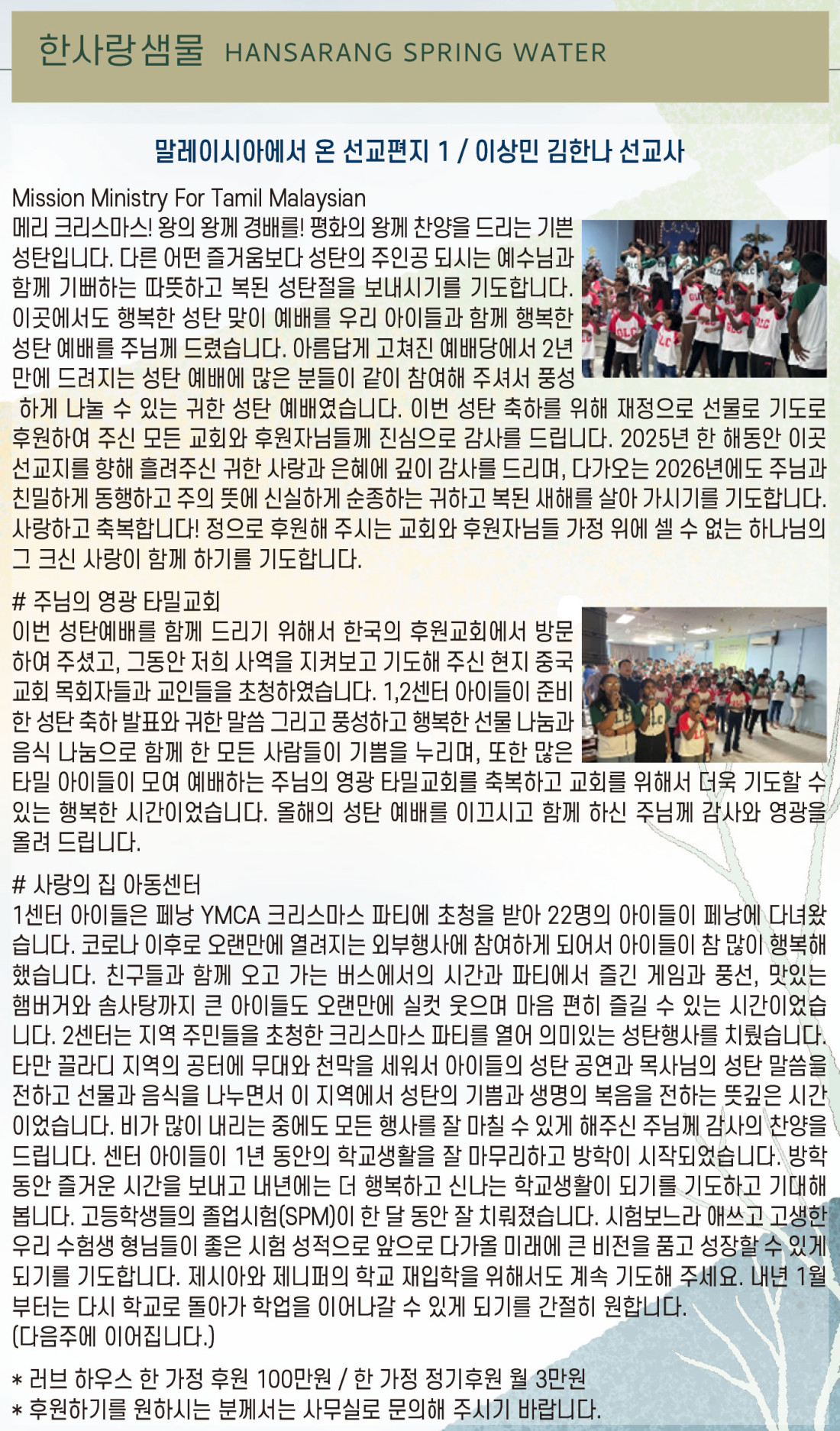 · 입금계좌 : 하나은행 171-910004-98804 (한사랑교회) · 문의 : 김왕희 전도사 ☎ 010-7143-6852